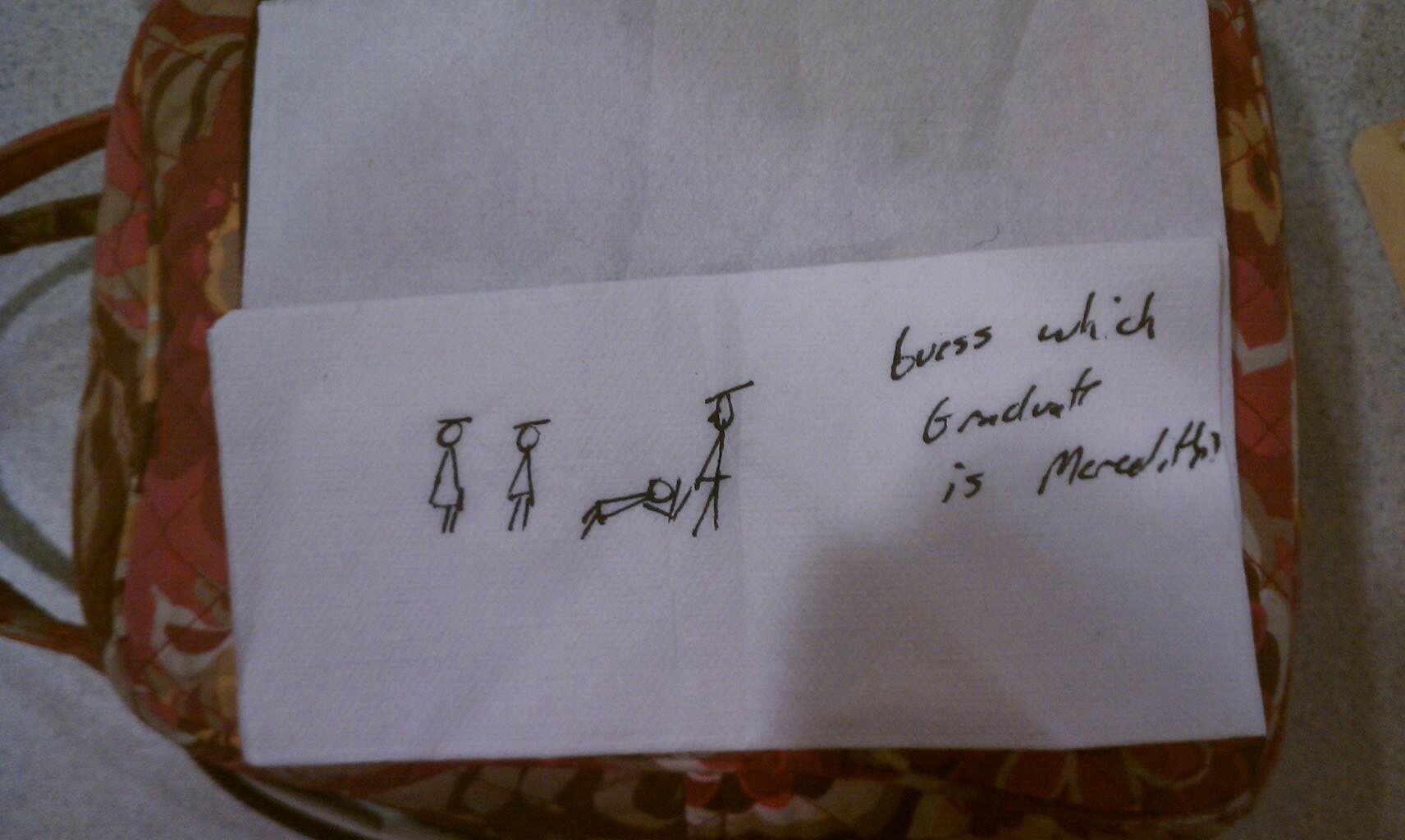 Your napkin drawings are priceless! Your daughter will probably look back years from now and wish she had kept them. 🙂