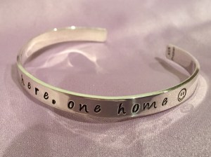 She has been blessed to receive many gifts since Kylie’s death – most from other mothers whose sympathetic hearts cannot imagine the loss. They often take the form of jewelry. One piece from a long-time friend always seemed to find her wrist. It was a simple silver band that said, “Three here, one home.”