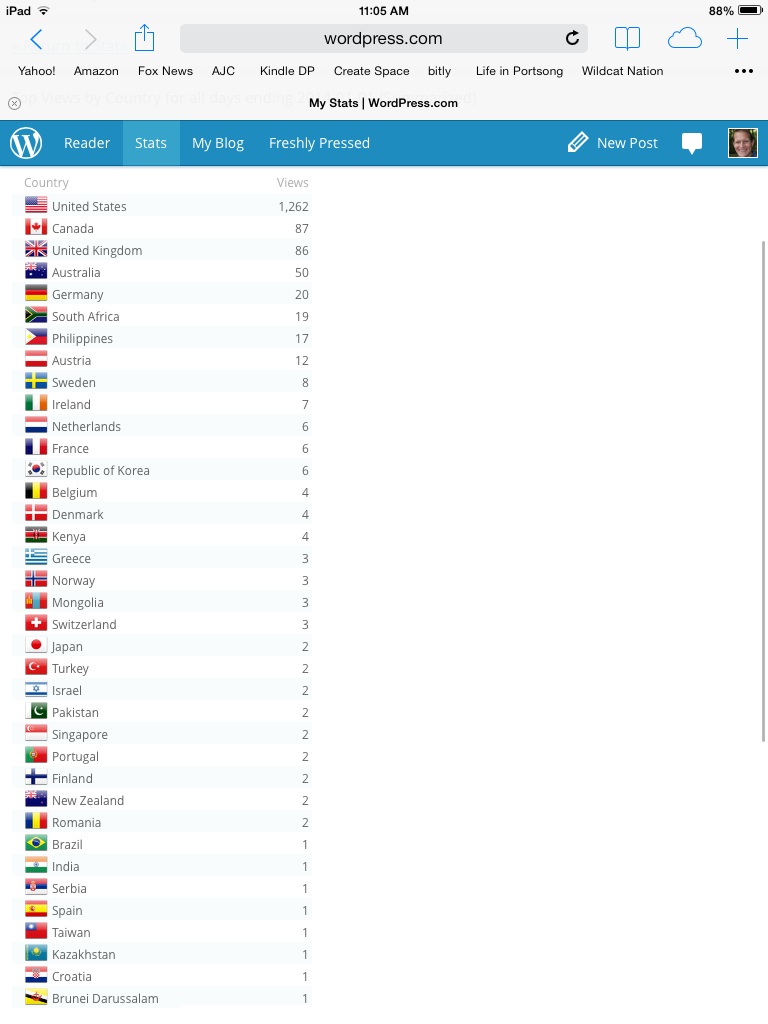 - Started this blog in October, which has been viewed 1623 times by people in 36 countries, and somehow has 90 followers. Finally hit the last continent with a reader from Brazil in December. Being a geography nerd, this little map thing makes me so very happy!